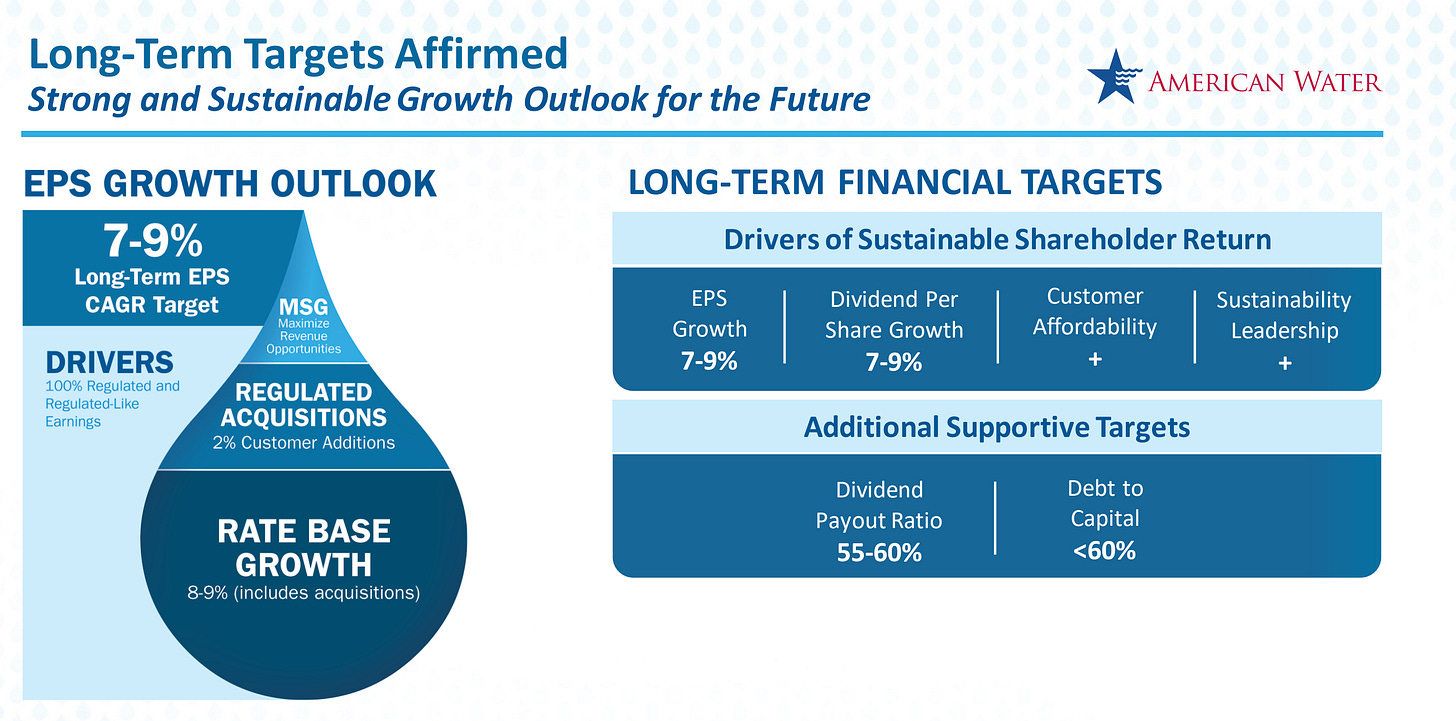 American Water Works management expect to grow EPS at 7-9% per year in the long run.