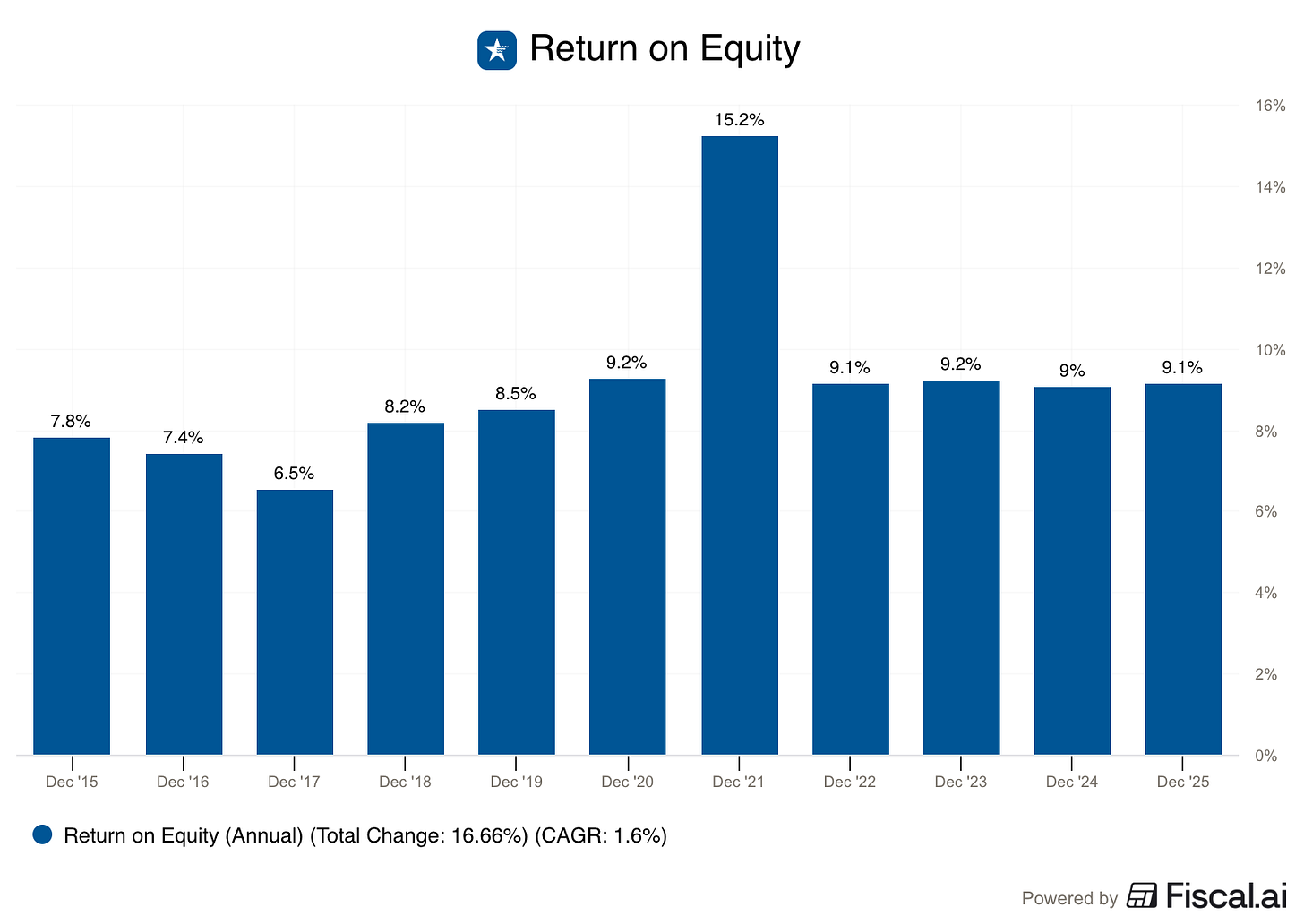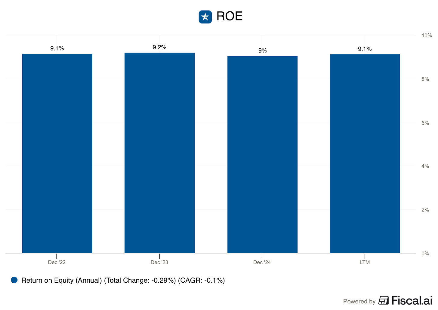 American Water Works earns attractive Returns on Shareholders Equity.