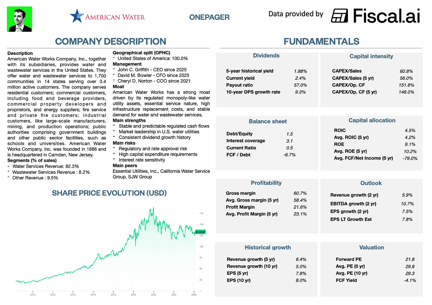 Its business is simple: it owns the treatment plants and the pipes that bring water to your house and take wastewater away.