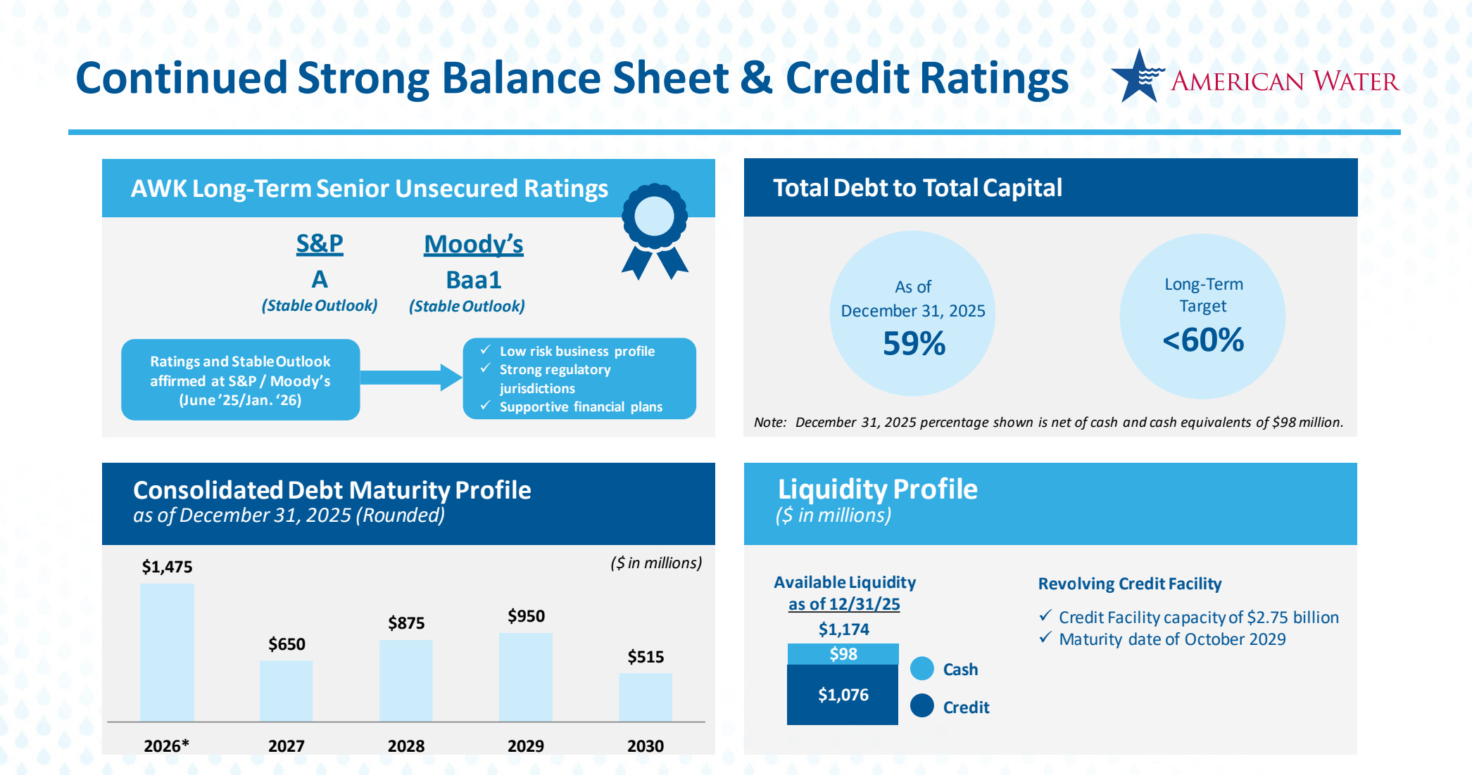 American Water Works has a healthy balance sheet for a utility company.