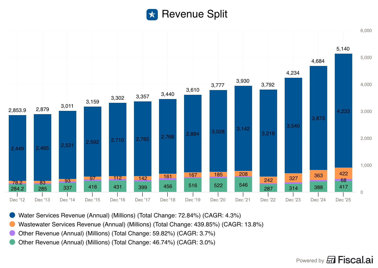 Regulated Water Services: $4.23B (82.3% of revenue)