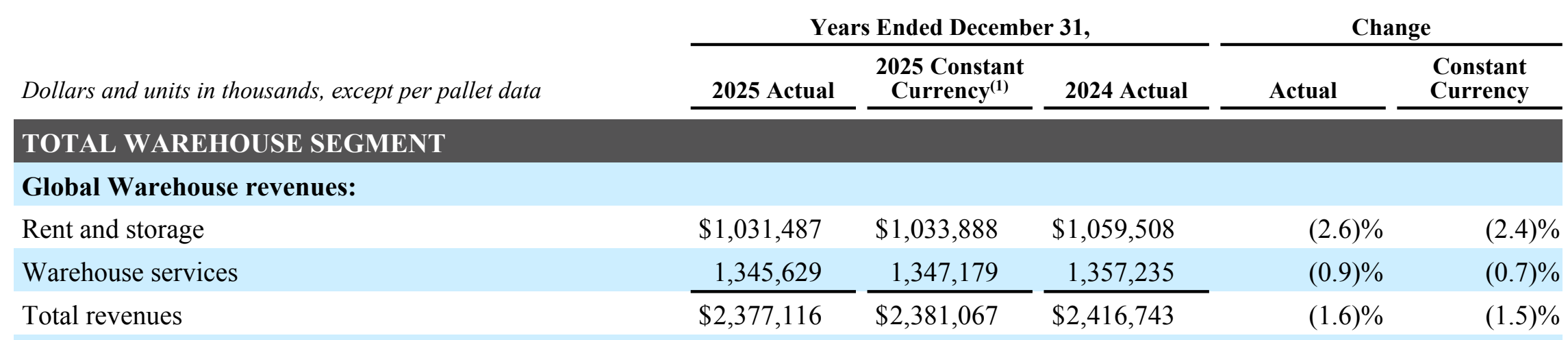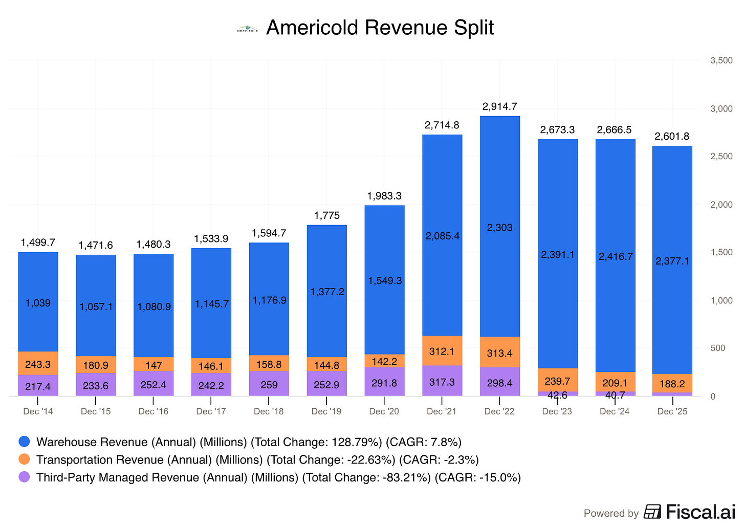 Most of the revenue comes from renting out cold storage space and the services provided within those warehouses.