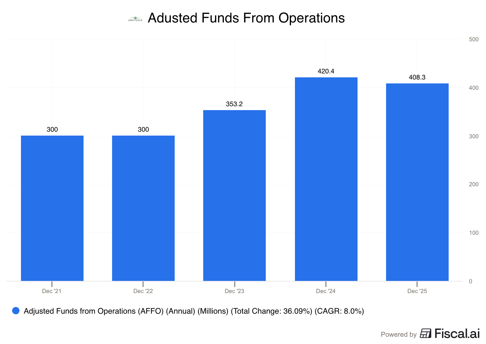 The management at Americold has grown the company’s AFFO at about 8% per year.