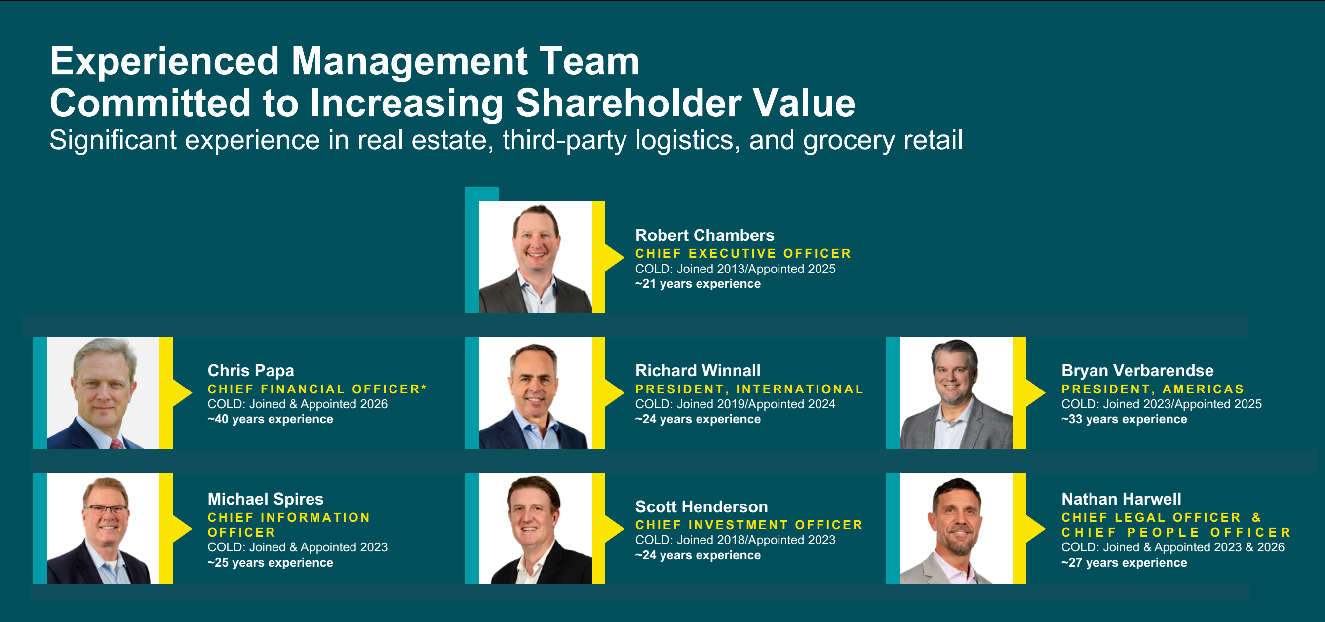 The management team at Americold has a lot of industry experience.