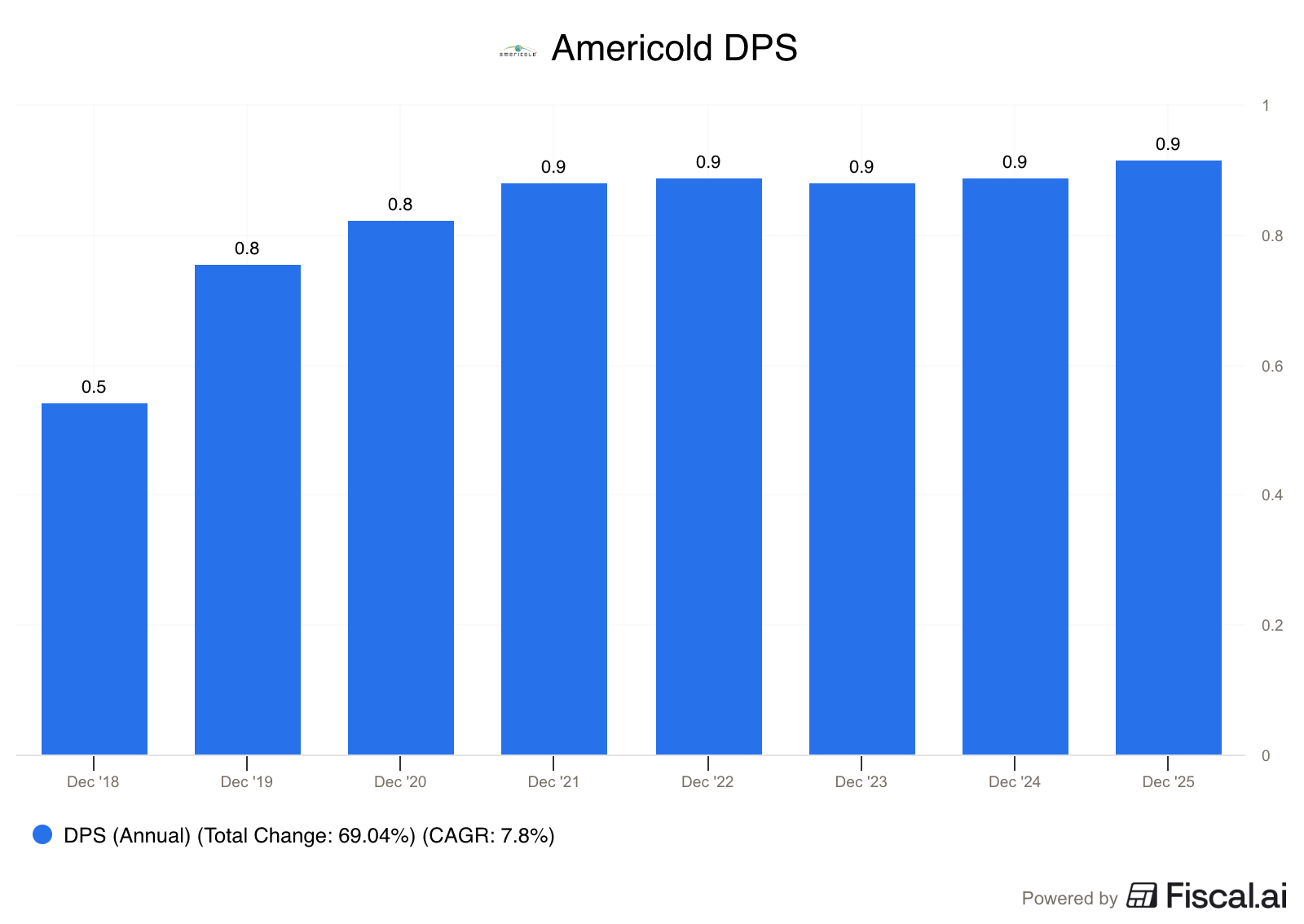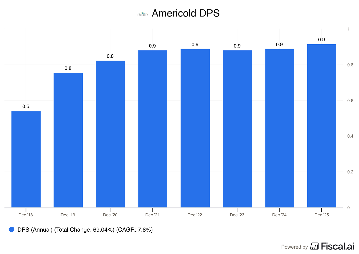 Americold went public in 2018, and has paid dividends consistently since then but has not raised them every single year.