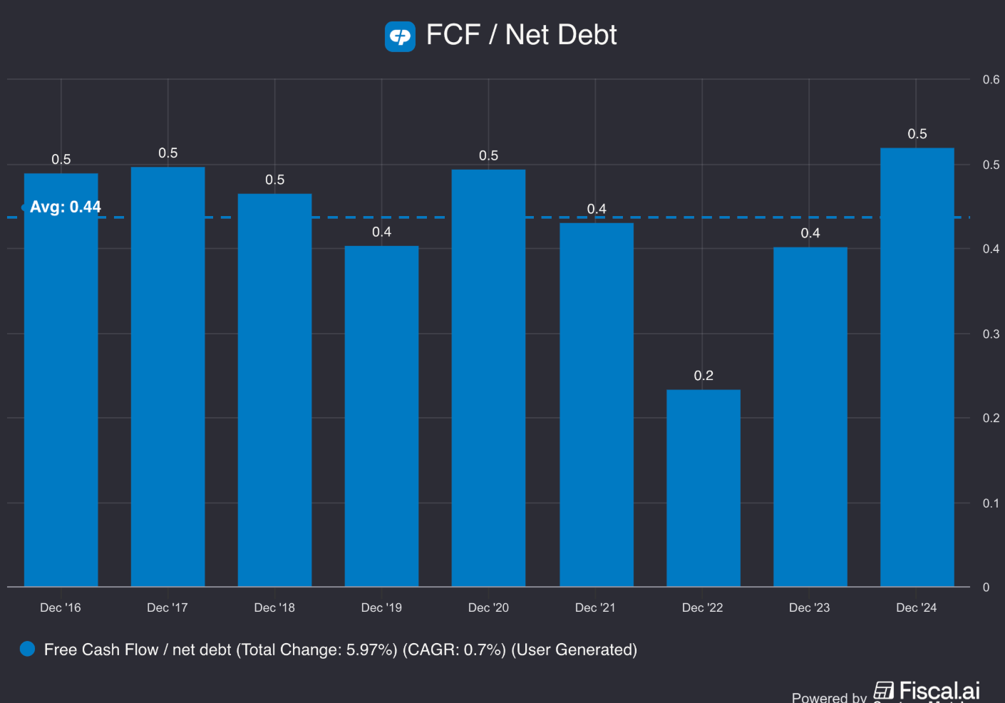 FCF / Debt: Tells us how easy it would be to pay off the debt with existing cash flow