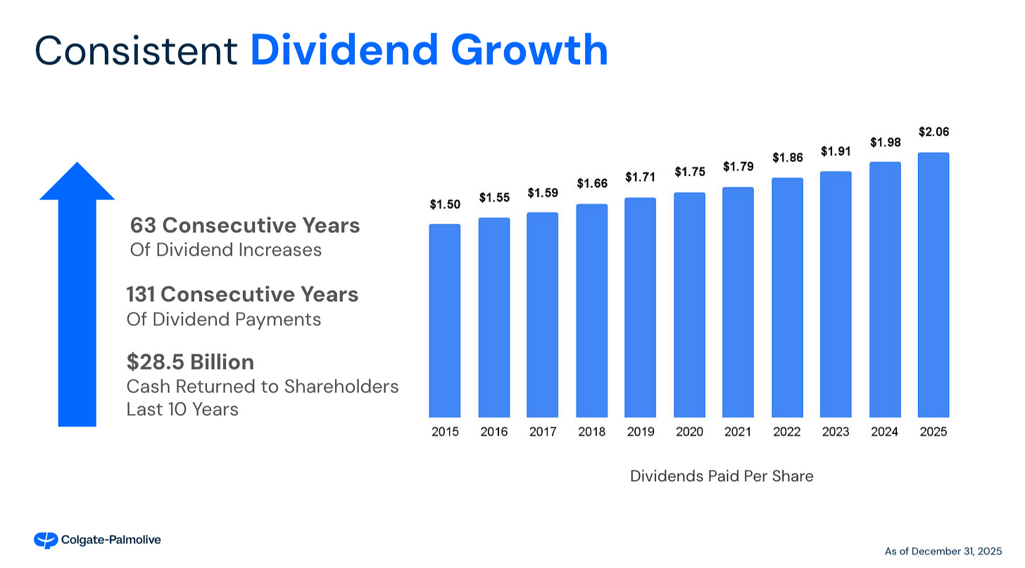 That’s because companies like Colgate-Palmolive provide stability and predictable dividend growth.