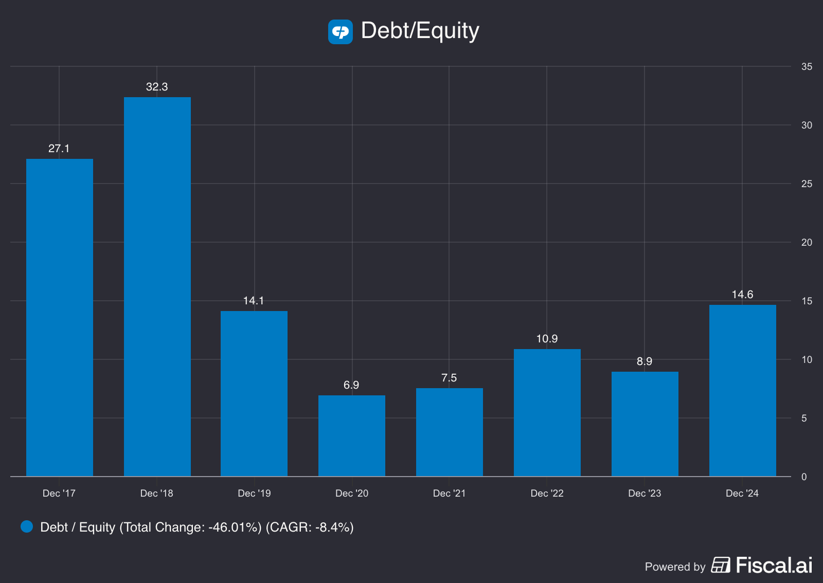 We typically like to see a Debt/Equity ratio of < 0.5.