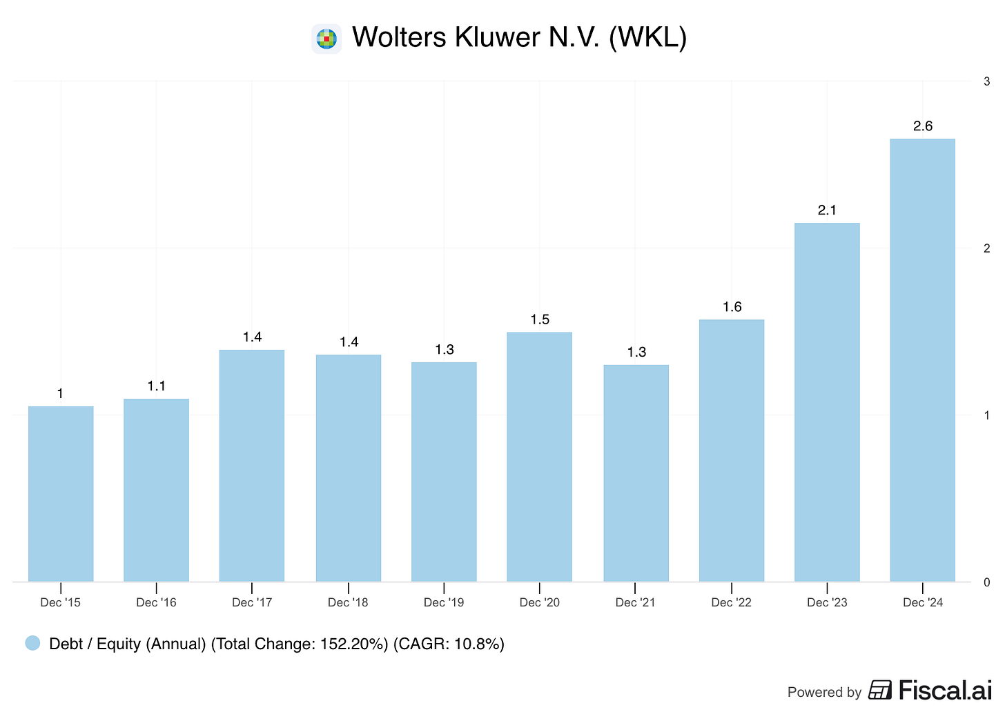 Wolters Kluwer has a Debt/Equity ratio of 2.6 that’s been rising.