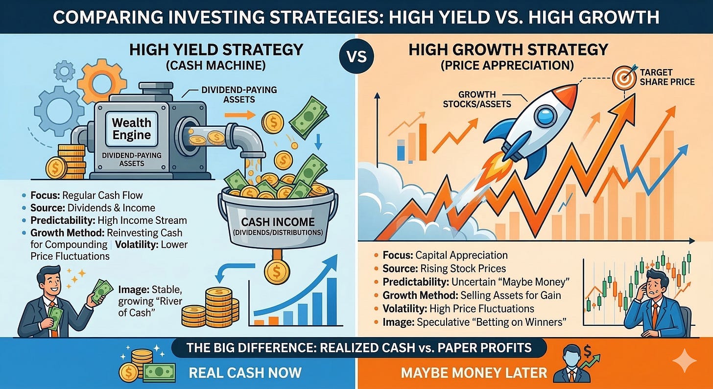 When you focus on the yield, your growth doesn’t come from a rising stock price, it comes from reinvestment.