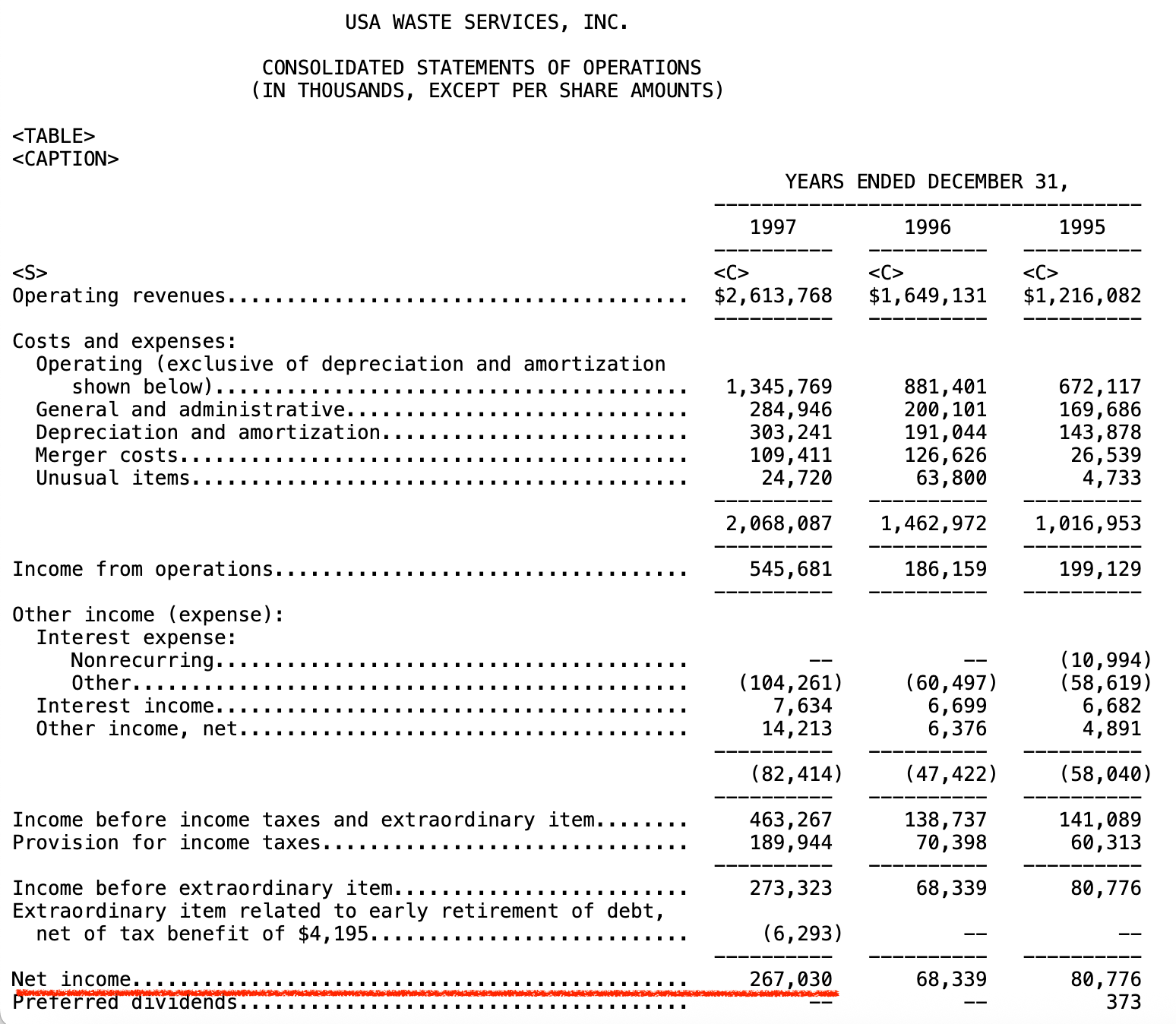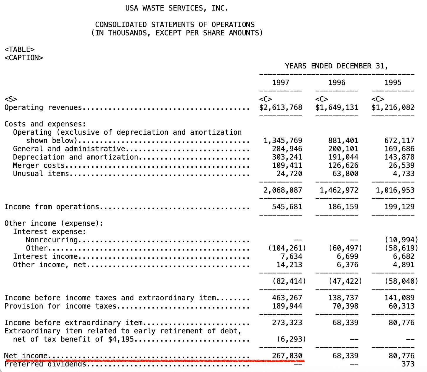 Note - these are reported as USA Waste Services which became the Waste Management we know today through a merger.