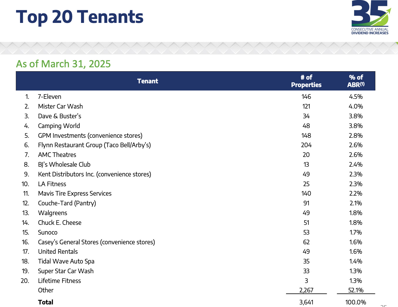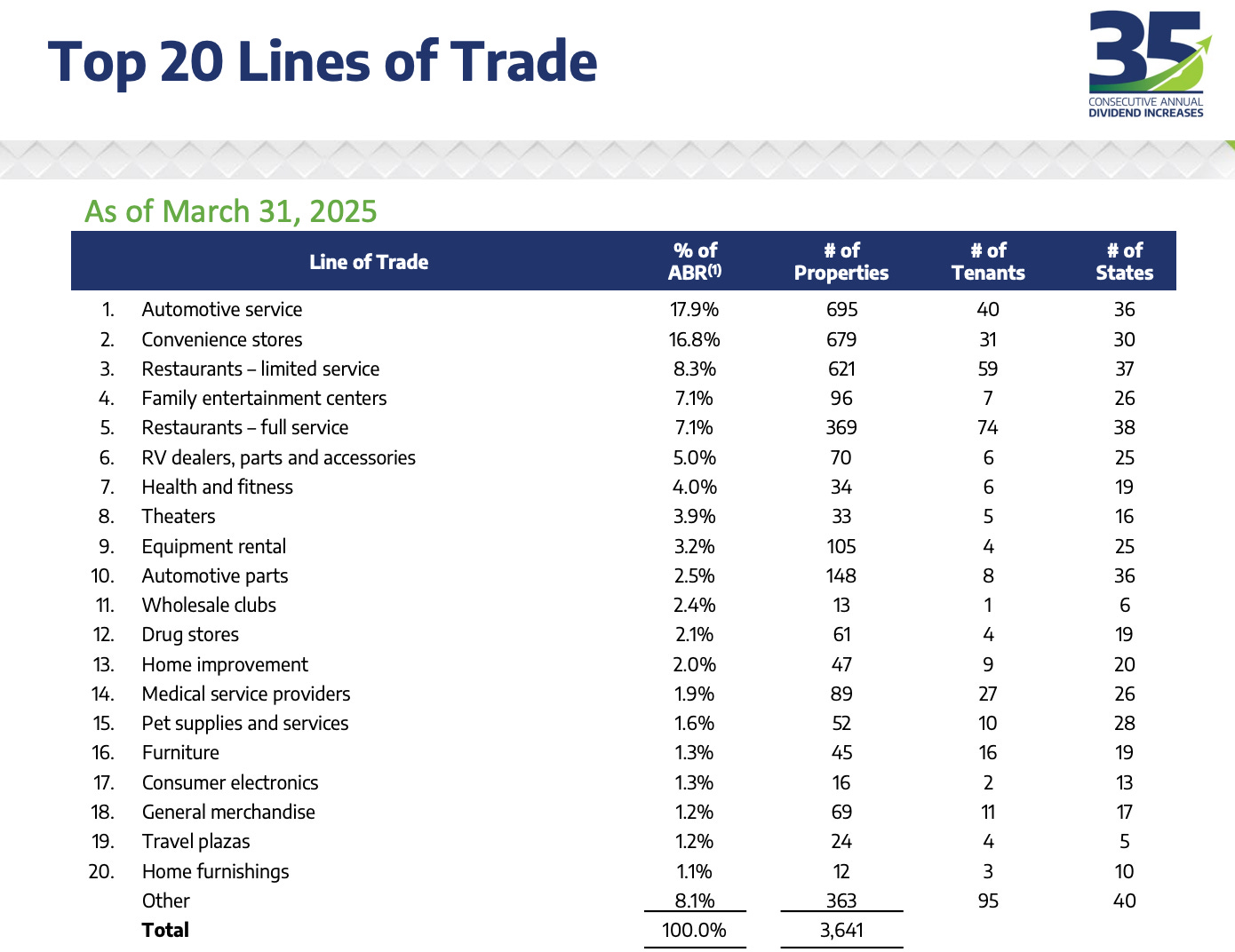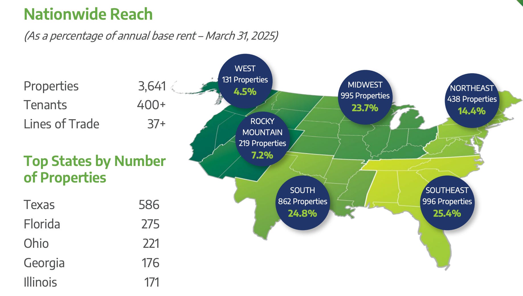 Over 3,600 properties across the U.S., with hundreds of tenants in different industries.