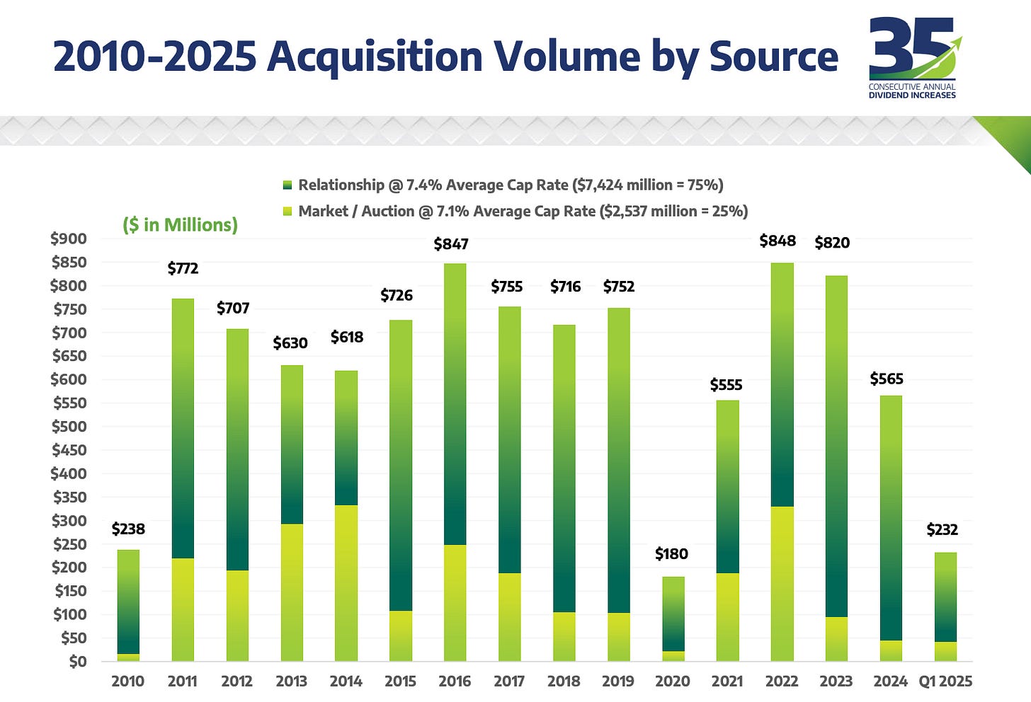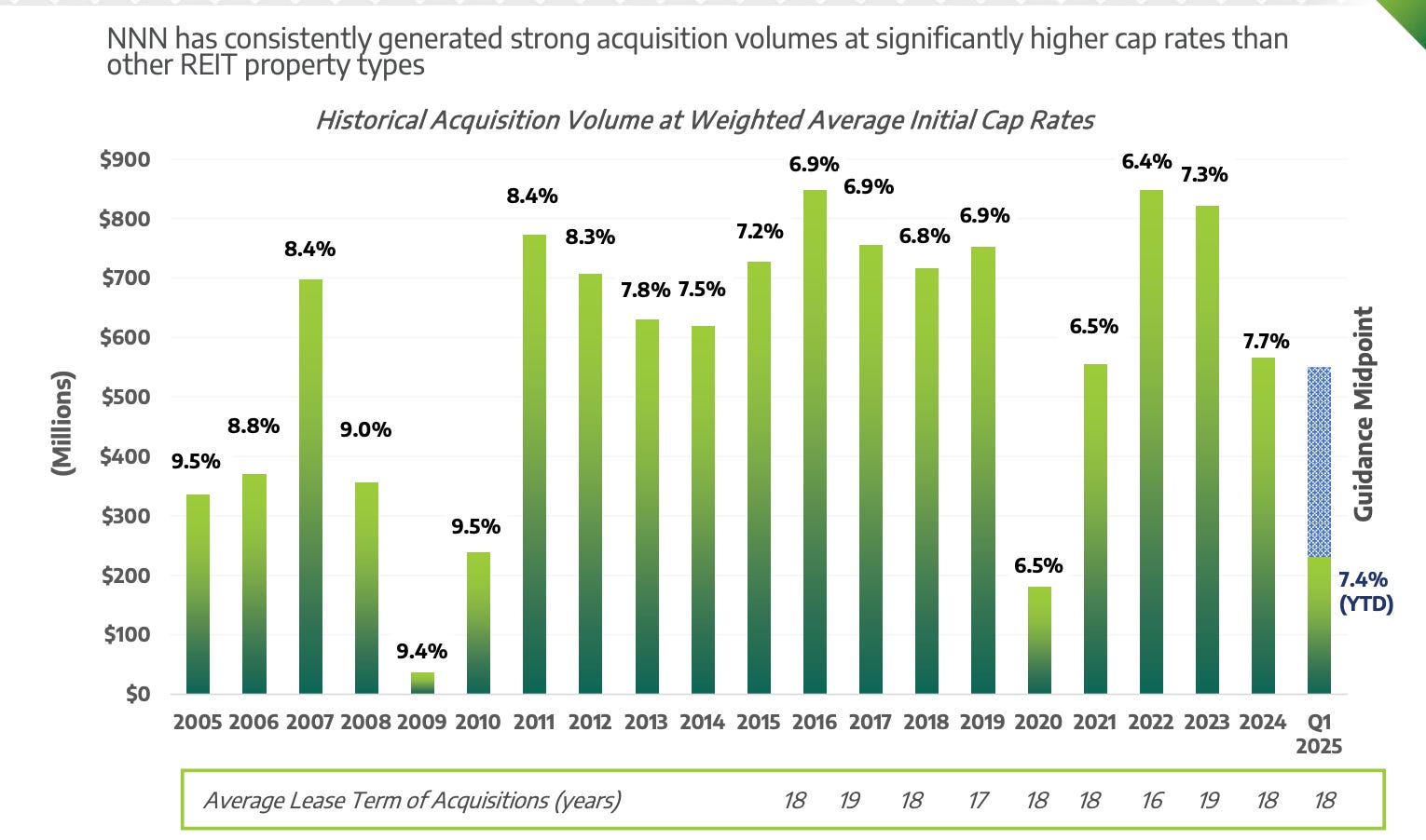 That means each acquisition grows NNN at above average rates - even when buying fewer properties.
