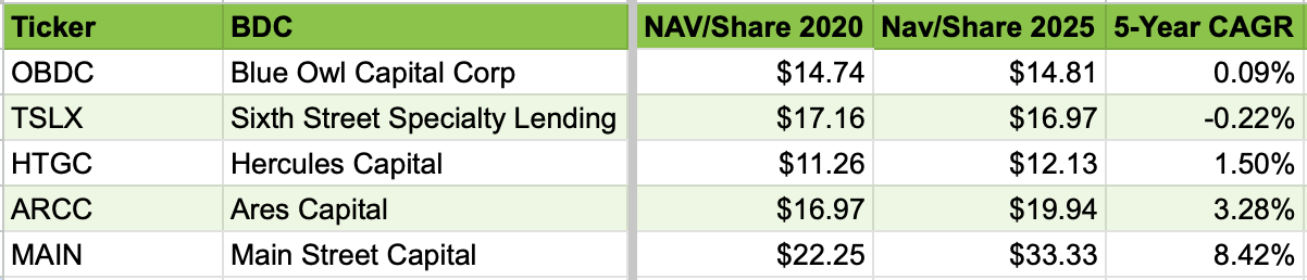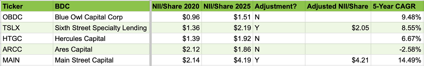 As a reminder, the 5 BDCs highlighted were: