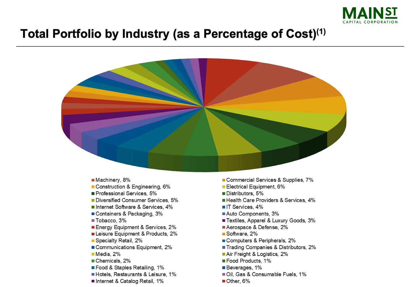 Main Street Capital is well diversified across industries.