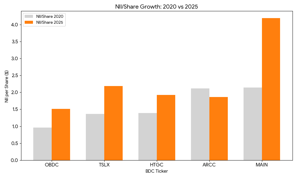 BDCs must grow to keep up with inflation. We’ll award one point for any growth in NAV/Share and NII/Share, and a bonus point if that growth is at least 3% (beating the inflation average).
