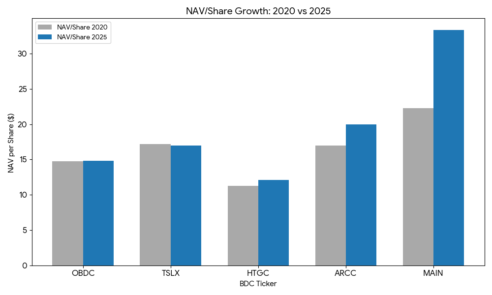 Blue Owl and Hercules both earn 3 points for strong earnings growth and positive (though lower) NAV growth.