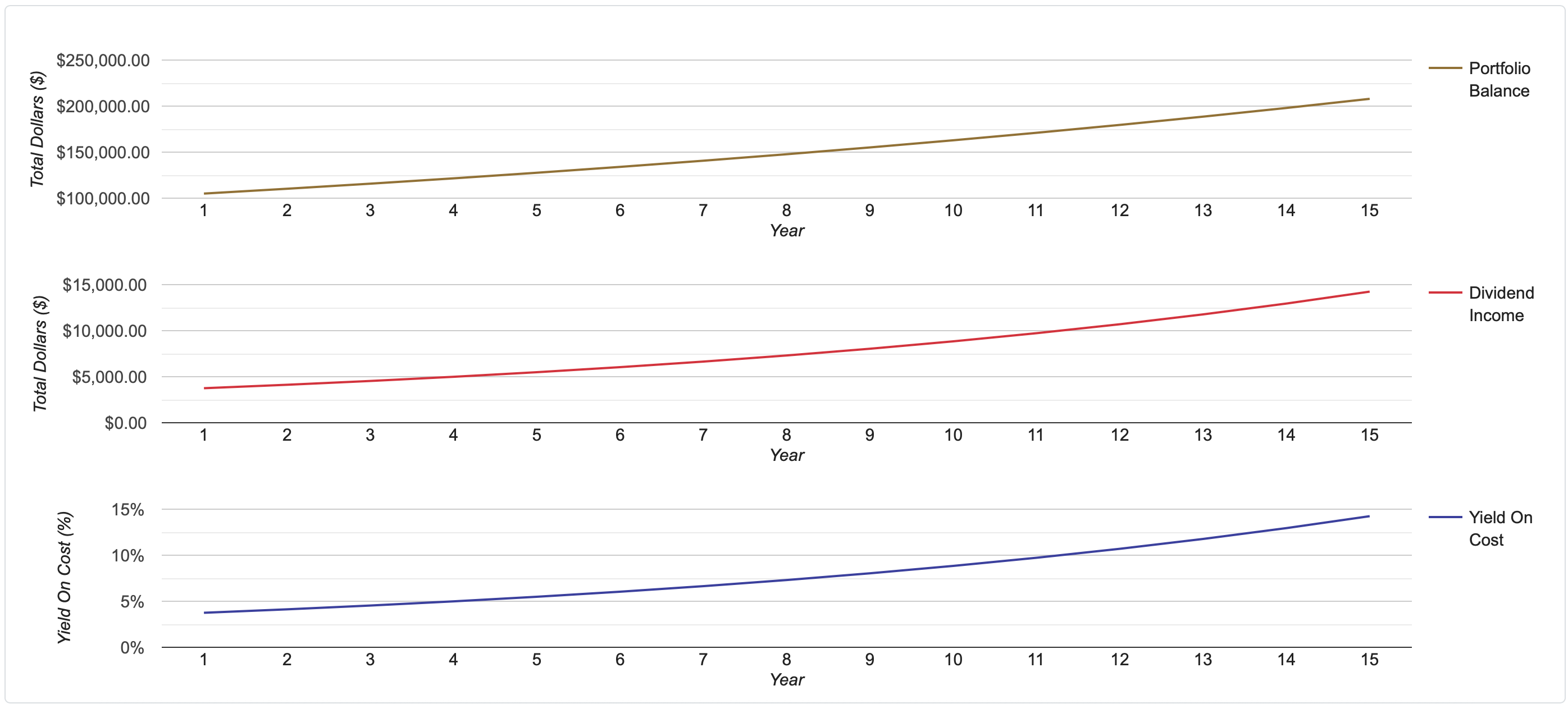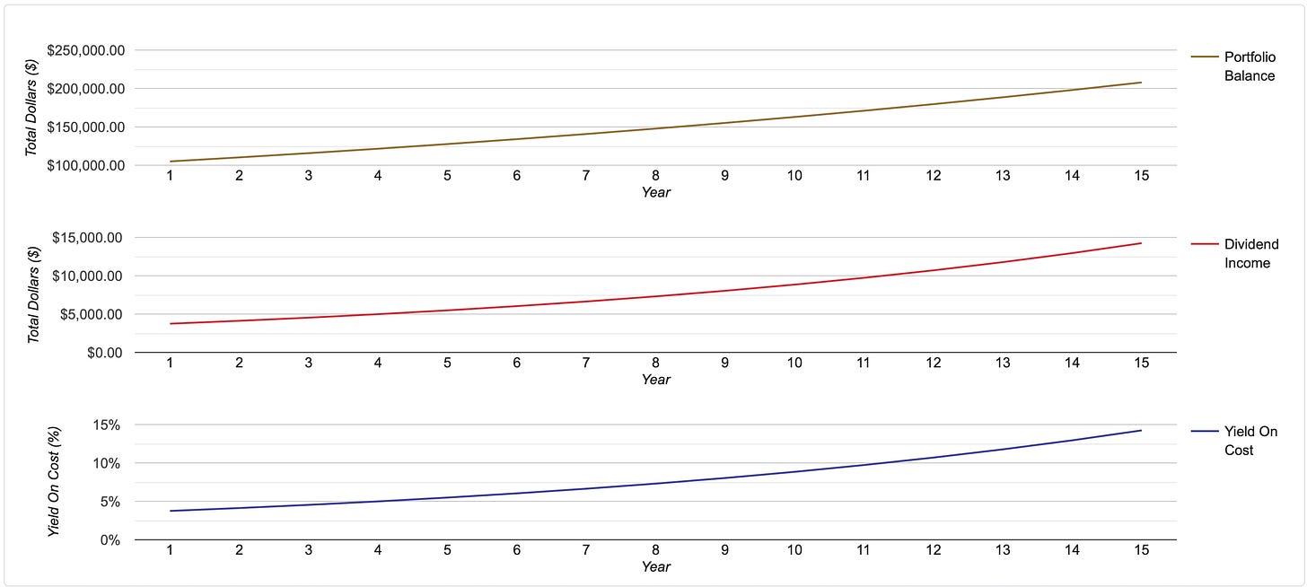 And if you can blend a healthy starting yield with solid dividend growth, you may be shocked at how much your income can grow in just 10–15 years