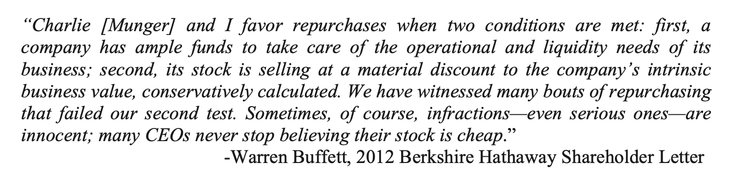 When the stock is significantly below intrinsic value, buybacks can be added