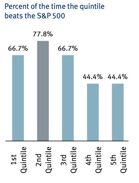 And dividend payers tend to beat the overall market - here they are broken down by quintiles based on yield.