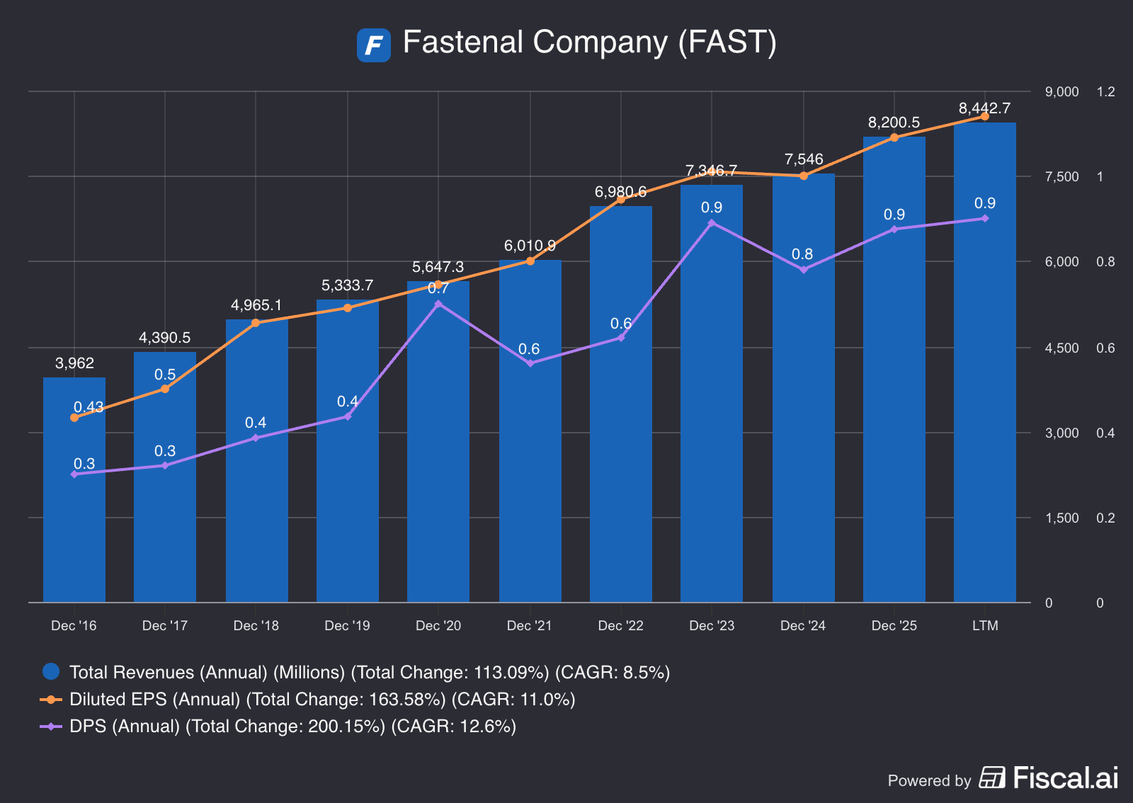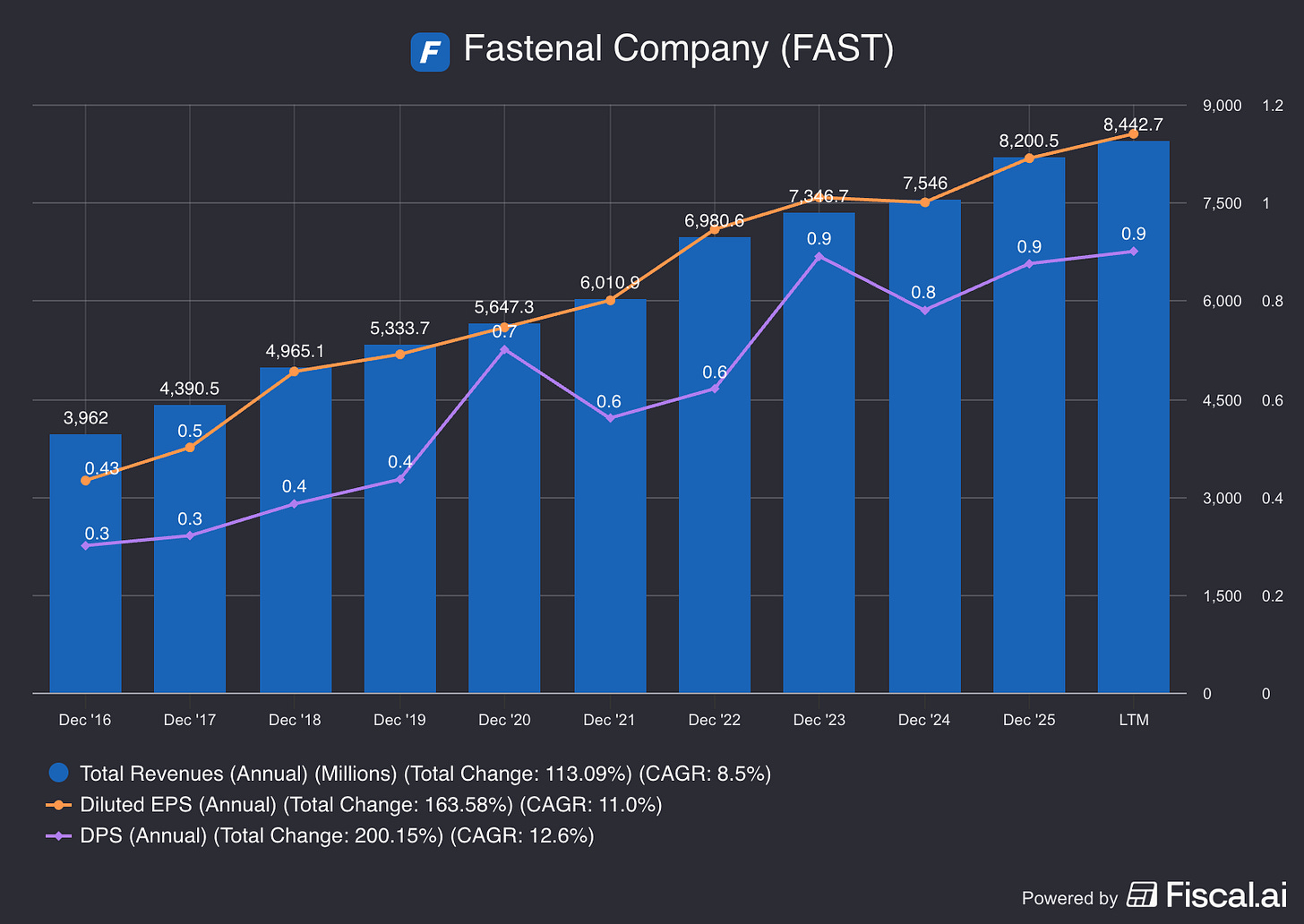Fastenal is a great example of this one.