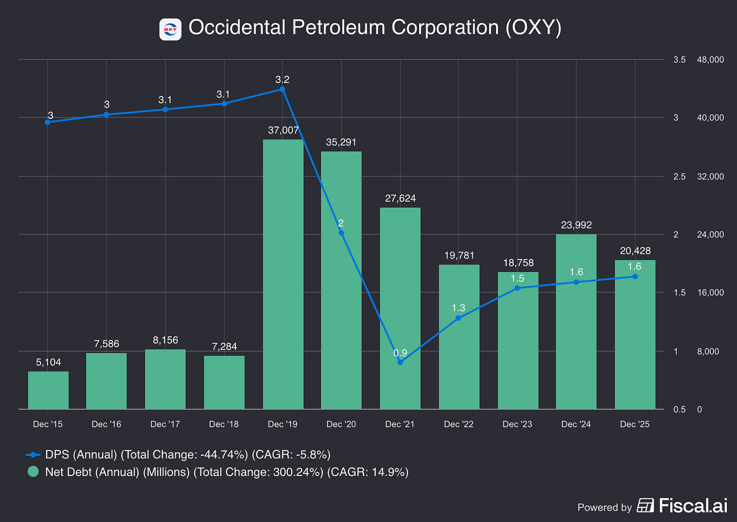 Once the debt level was reduced, Occidental was able to start raising the dividend again.