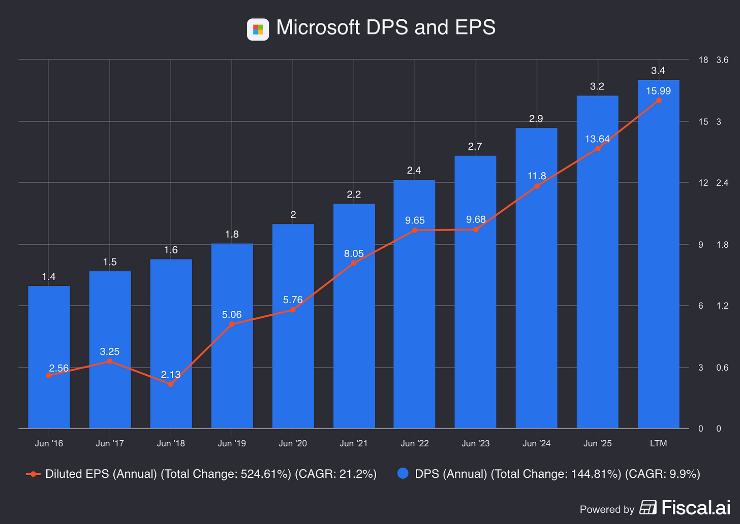 Let’s stay in the Mag 7 for example with a company that’s paid and grown dividends for a long time.