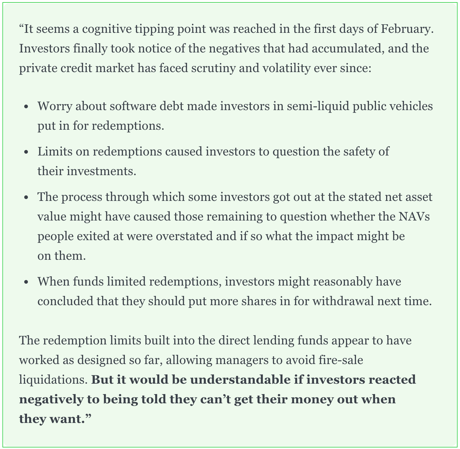 For years, sentiment around private credit was flawless.