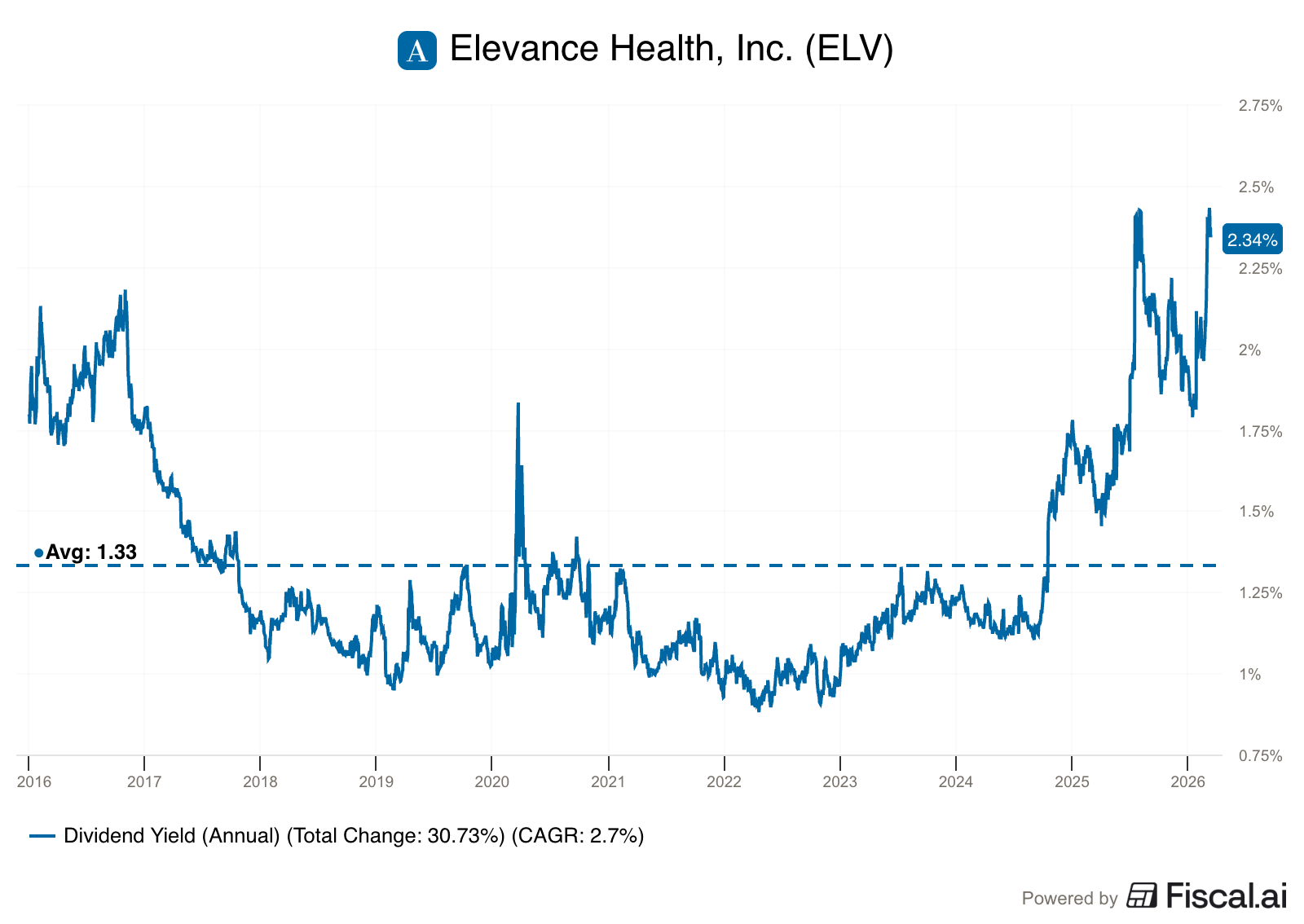 Elevance is a blue chip in the healthcare sector with a history of growing its dividend by 10.6% every year for the past decade.