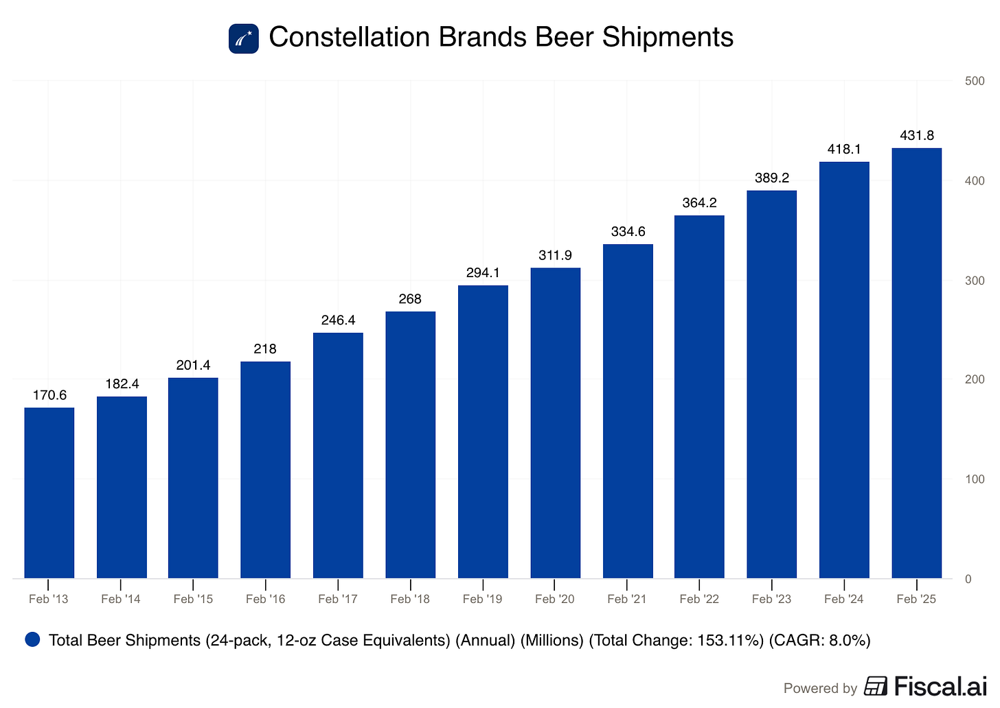 A lot of alcohol brands are seeing volume declines, but Constellation sells more beer every single year.