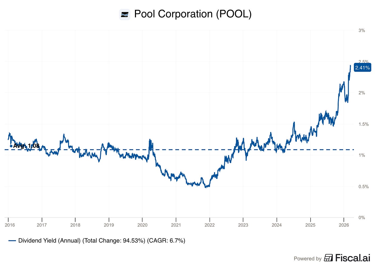 Historically, Pool Corp is a low yield, high growth stock that often yields around 1%.