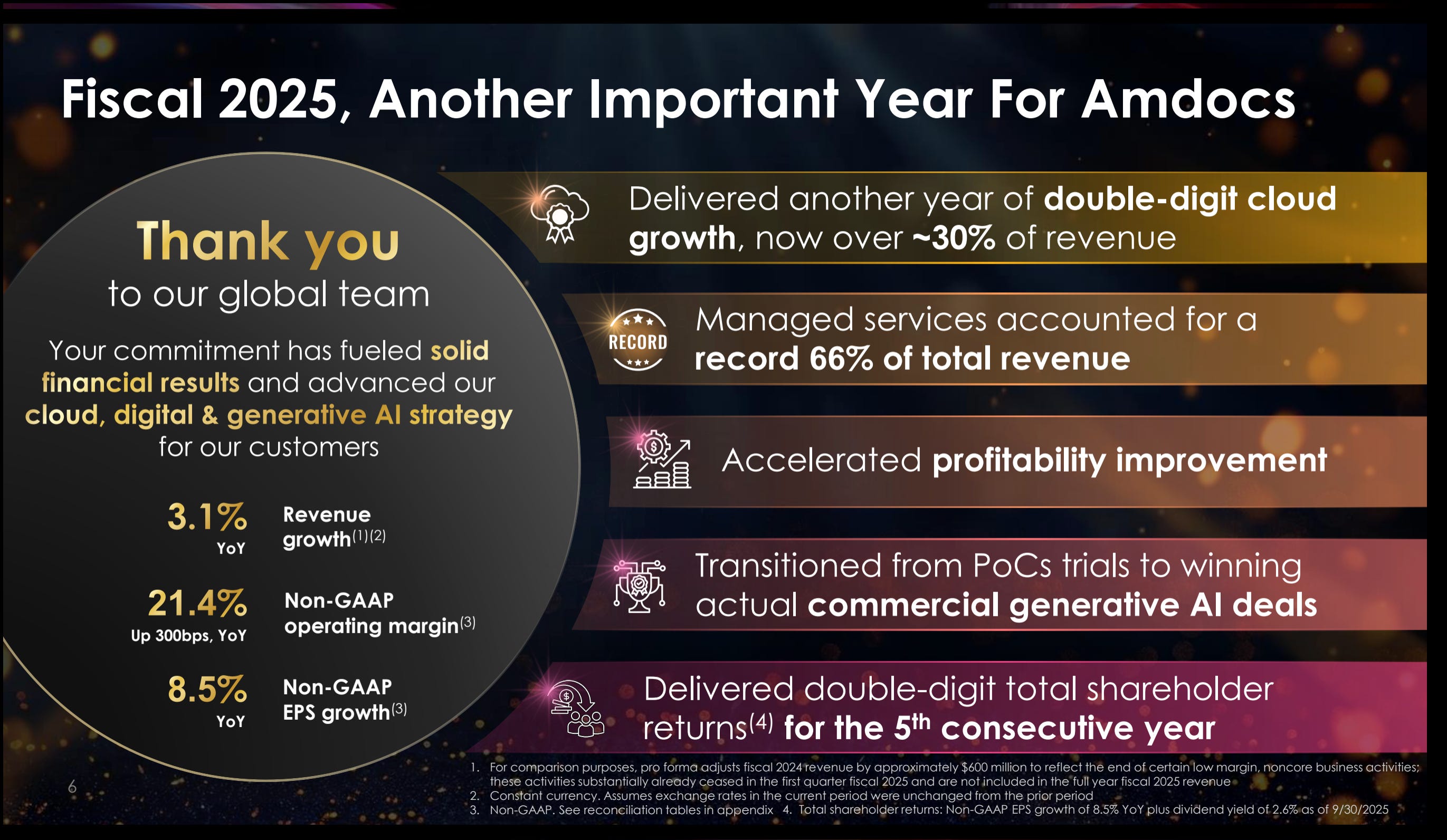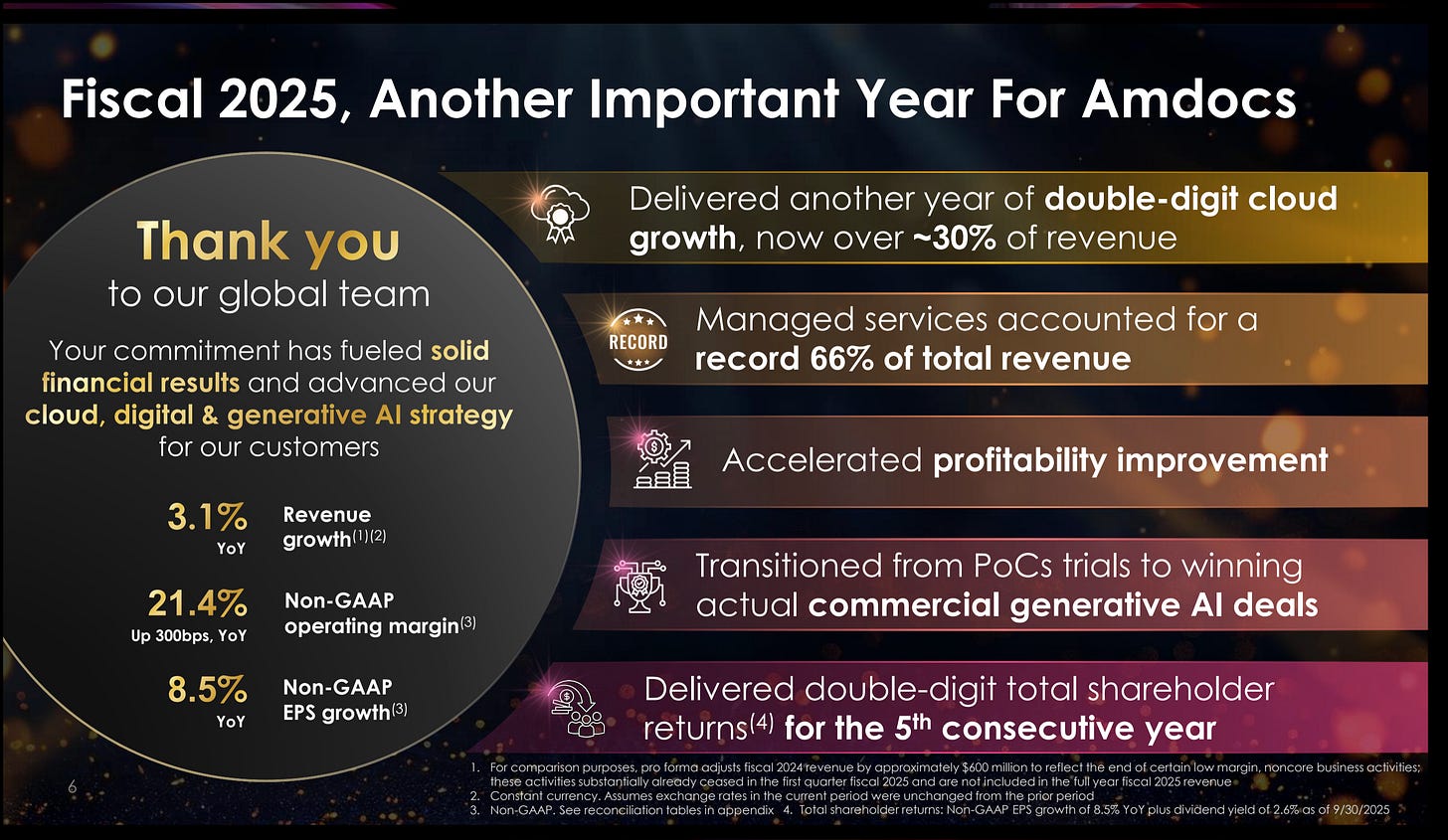 Amdocs provides specialized software and services to global communication and media companies, managing their billing, customer relationships, and network operations