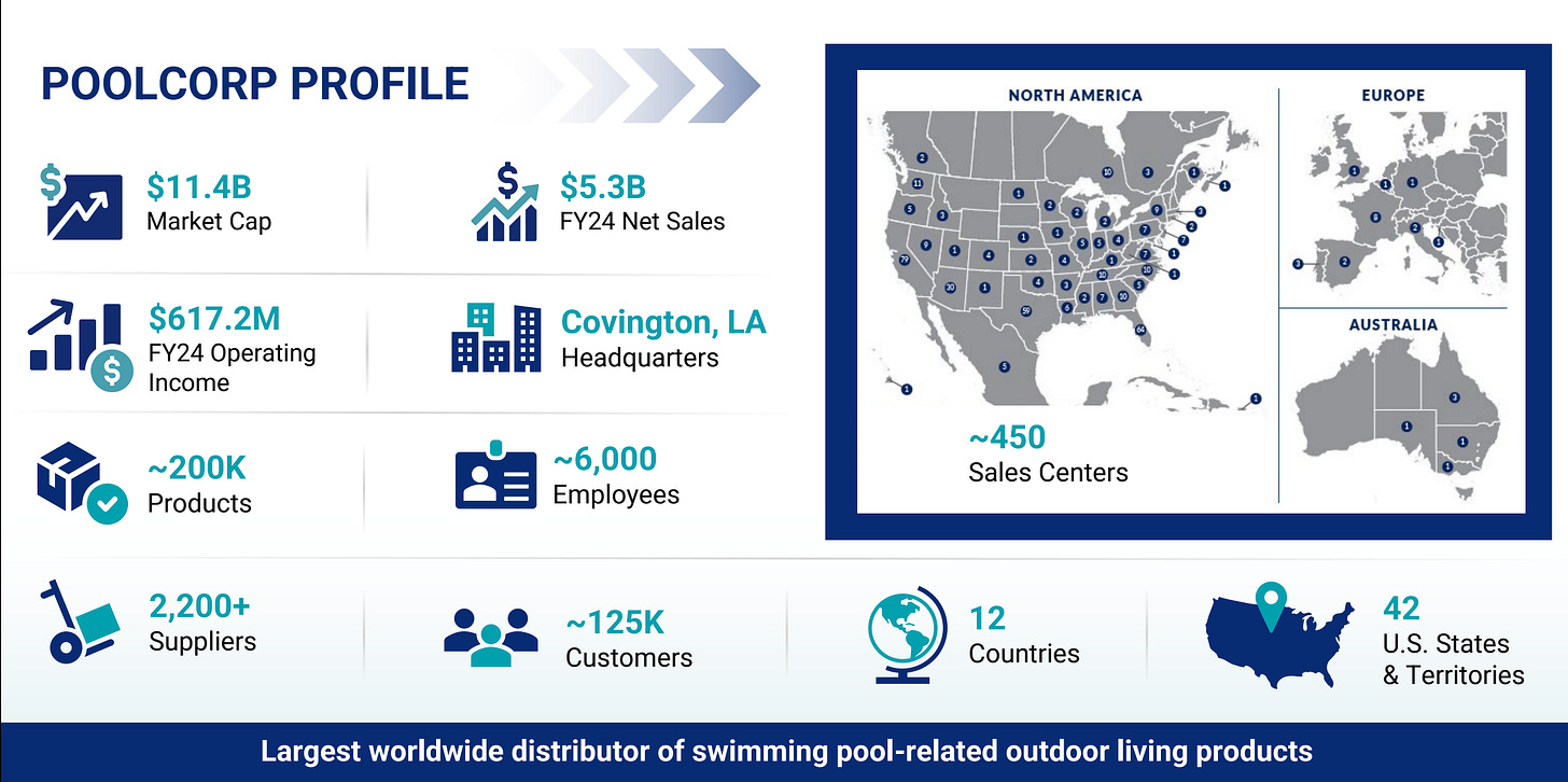 Pool Corp is the world’s largest wholesale distributor of swimming pool supplies and equipment, serving professional contractors and specialty retailers.