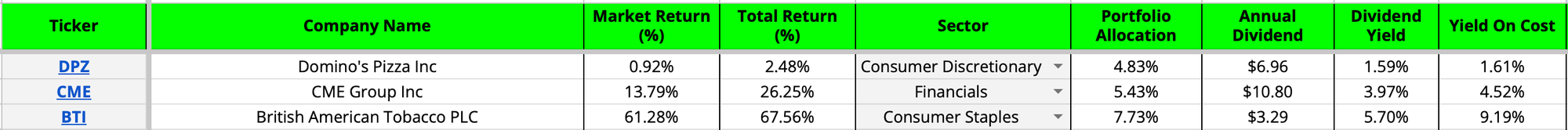 It’s also got the highest yield on cost in the portfolio and provides about 15% of our dividend income every year.
