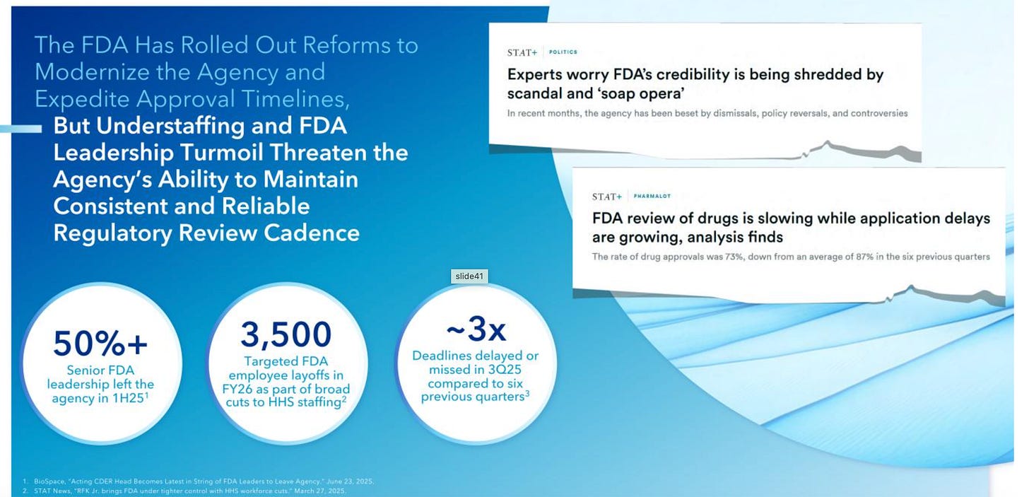 Massive turnover in FDA leadership and staff layoffs have caused delays in drug approvals, creating a bottleneck that prevents companies from commercializing products and generating revenue
