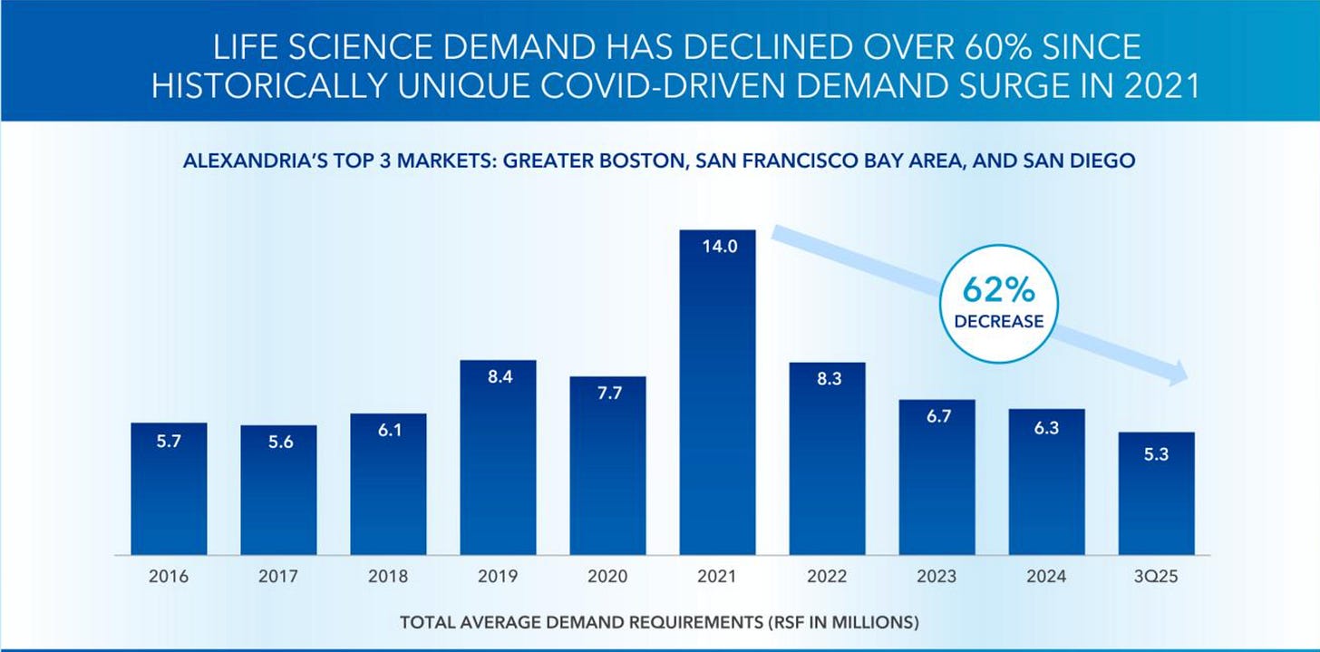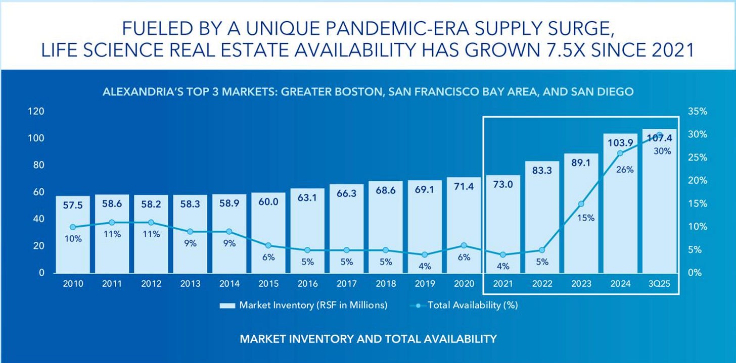 Supply Risk: Alexandria had been talking about the oversupply of lab space in their communications with investors.