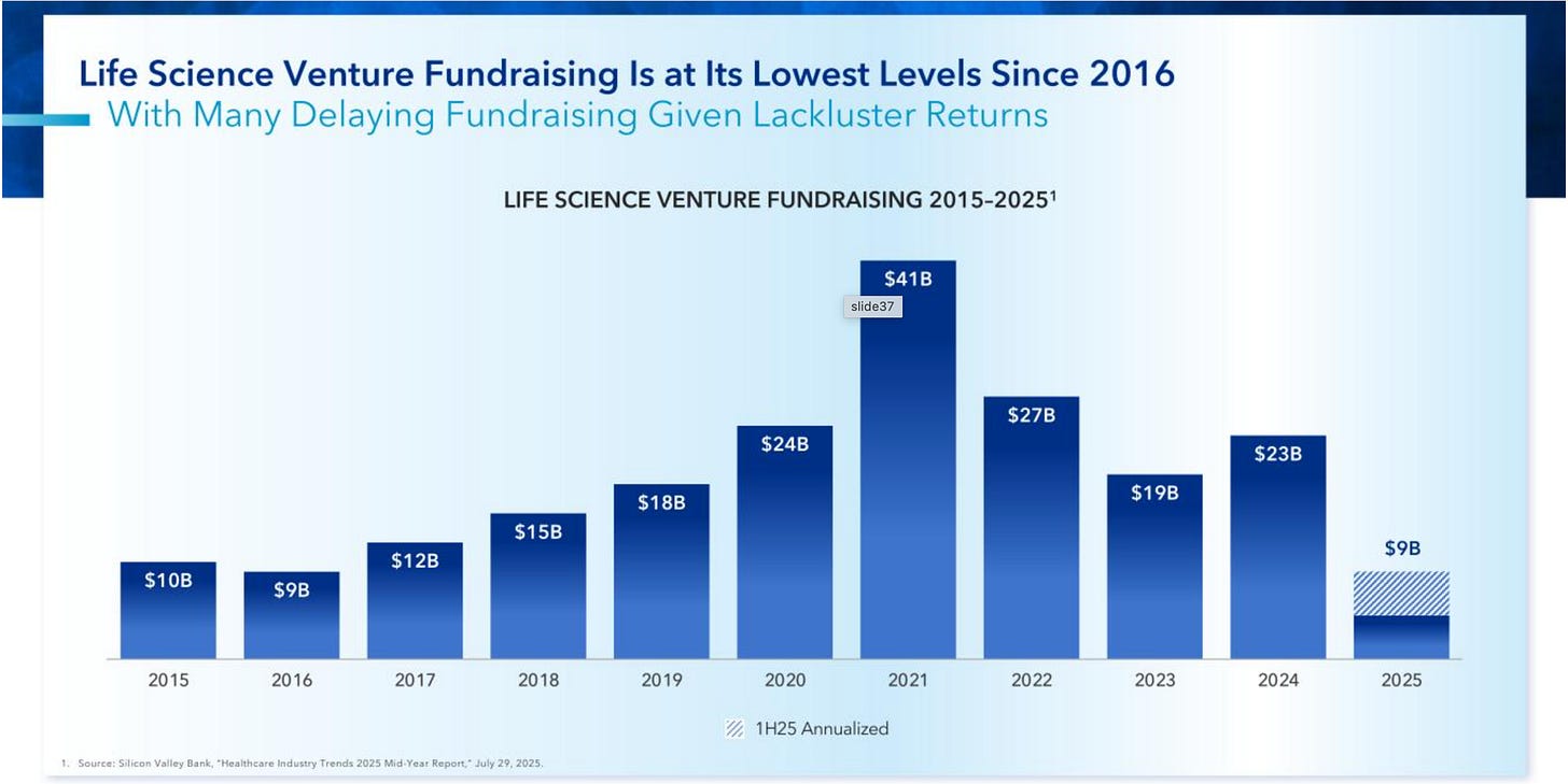 Venture capital is drying up: Many biotech start ups rely on venture funding to get started, which is drying up