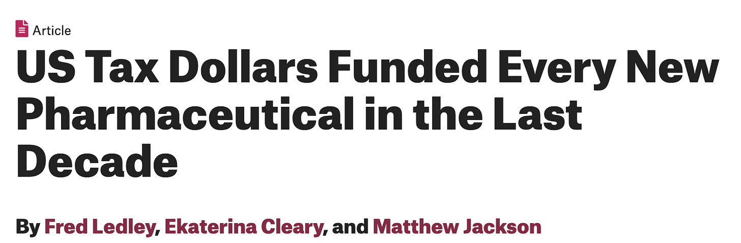 That means that NIH dollars helped fund essentially every new drug of the last decade.