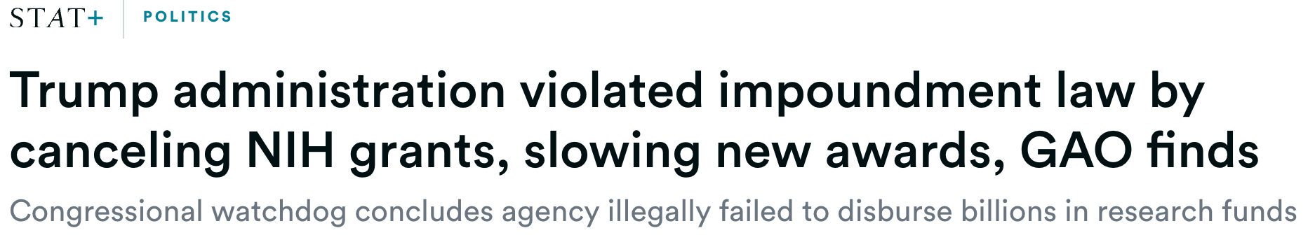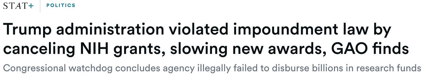In August, the Government Accountability Office found that the Trump administration had illegally withheld funds by terminating over 1,800 NIH grants.