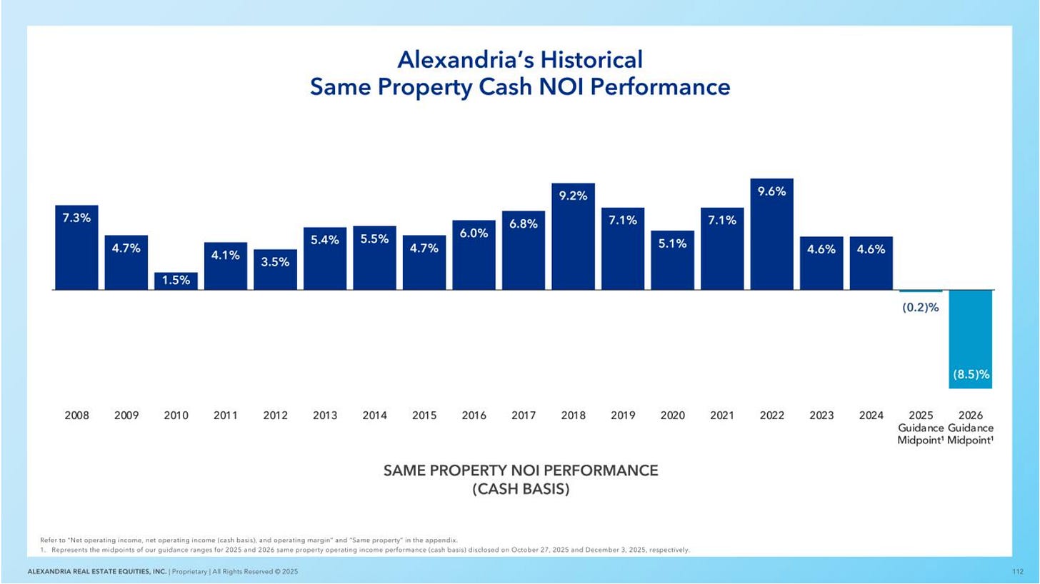 At their investor day, Alexandria’s management said that all 4 pillars of the industry are collapsing at once.