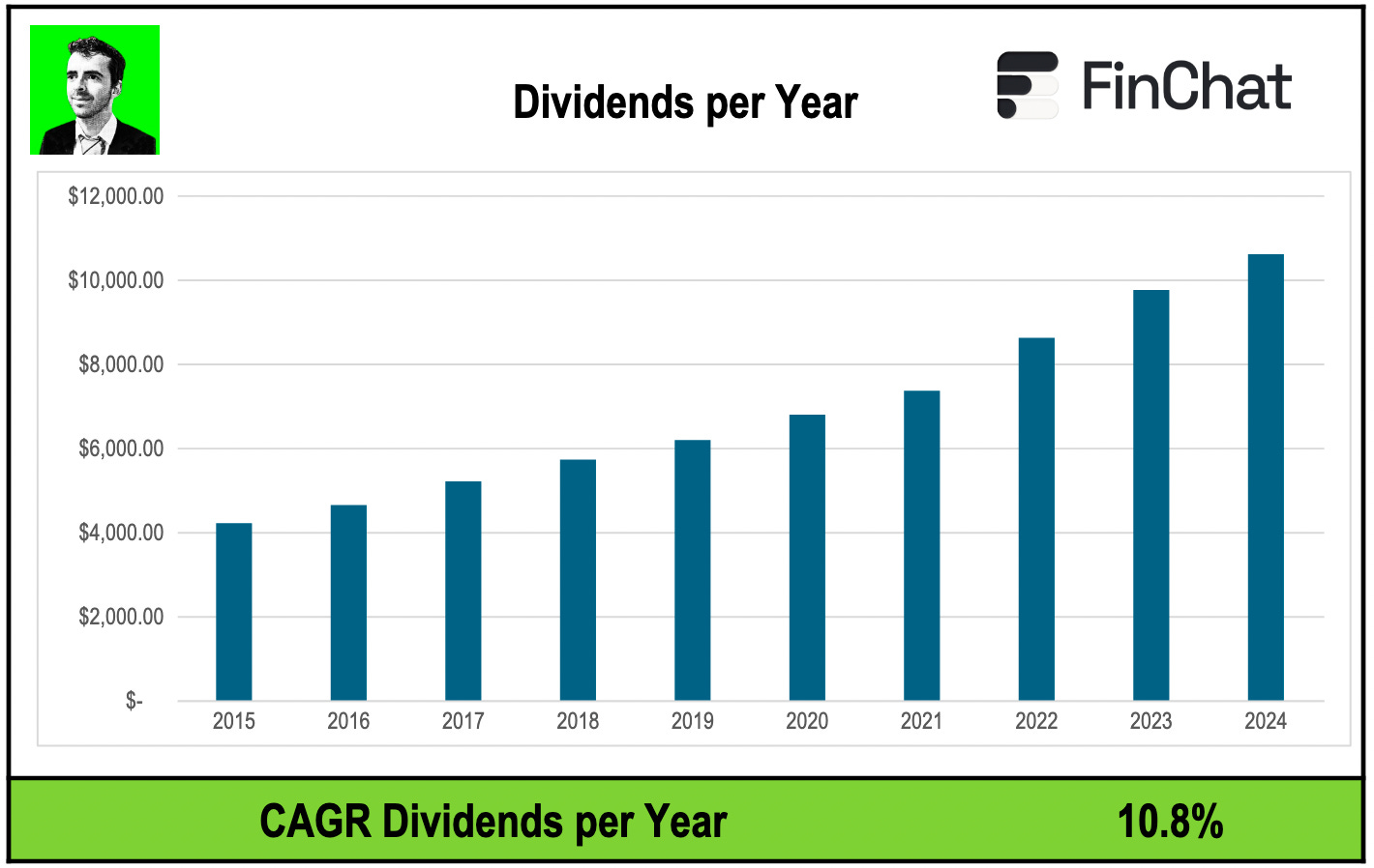 Reinvest those dividends into more business that pay you and you can watch your income grow, just like the income from Our Portfolio: